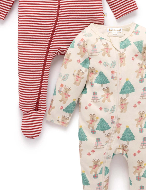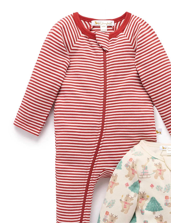 2 Pack Christmas Zip Growsuit – Organic Cotton