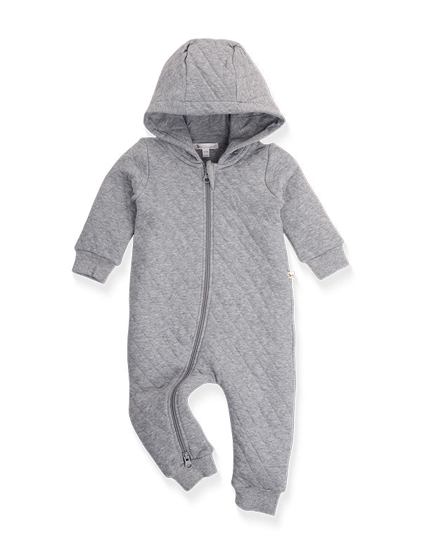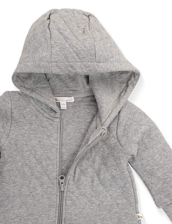 Keep your baby snug and warm in Oh My Bebe’s Organic Quilted Grey Baby Romper. Crafted from soft 100% organic cotton, this romper features a cozy quilted texture that provides gentle warmth without being bulky. The hooded design keeps your baby’s head protected during chilly days, while the two-way zipper makes dressing and diaper changes quick and easy.