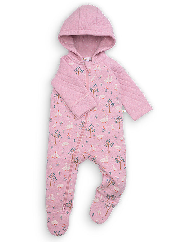 Let your little one stay wrapped in pure softness with our Organic Quilted Pink Duck Print Baby Romper — a perfect blend of comfort, warmth, and adorable charm. Made with 100% certified organic cotton, this romper feels incredibly gentle on delicate newborn skin, ensuring your baby stays cozy and safe through every cuddle, nap, and tiny adventure.