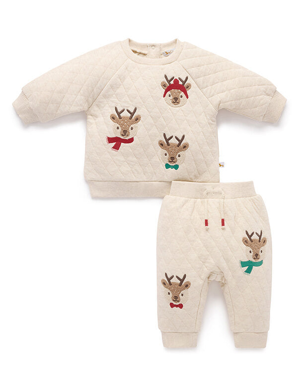 This adorable Reindeer Quilted Co-ord Set is made from 100% premium organic cotton, offering cloud-soft warmth that’s gentle on sensitive baby skin. The cute reindeer embroidery adds a playful festive touch — perfect for outings, playtime, or snuggly days at home.