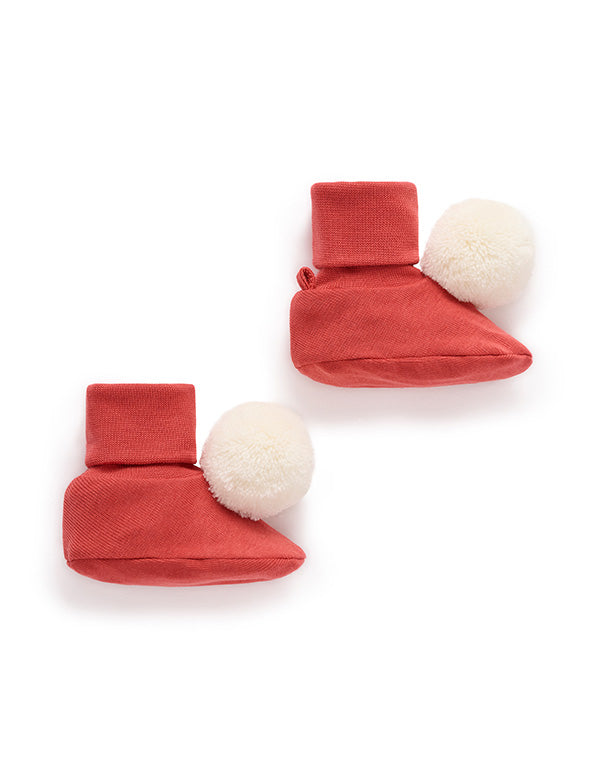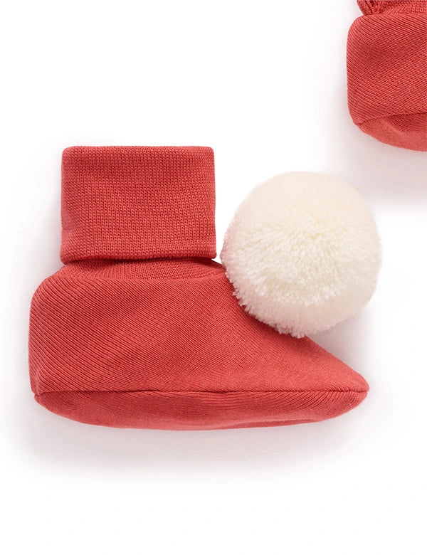 These Santa Pom Pom Baby Booties are crafted from soft organic cotton for a gentle, breathable feel against delicate skin. Each pair features a cute fluffy pom pom, adding Christmas cheer to every step (or wriggle!).